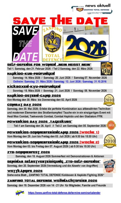 ZANFINO TOTAL DEFENSE steht für Qualität, Vielfalt und Gemeinschaft. Durch unsere enge Kooperation mit Verbänden, Turnvereinen, Schulen und Organisationen können wir Ihnen ein außergewöhnlich breites Spektrum an Trainingsmöglichkeiten anbieten. Ob Kinder, Jugendliche oder Erwachsene – bei uns finden alle Altersgruppen ein passendes Angebot, das sowohl sportliche Entwicklung als auch persönliche Entfaltung fördert.